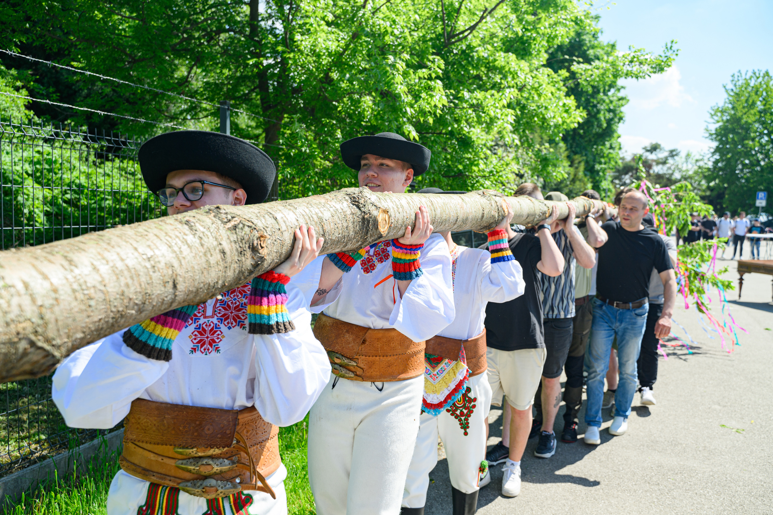 Máj, symbolizujúci prebúdzajúcu sa jarnú prírodu, vitalitu a energiu, postavili v duchu ľudových tradícií v Botanickej záhrade SPU chlapci z Folklórneho súboru Zobor. Pestrofarebnými stuhami máj vyzdobili zoboristky. Kultúrne podujatie spolu s folkloristami otvorila rektorka SPU Klaudia Halászová. „Teší nás, že Folklórny súbor Zobor udržiava tradície, ktoré máme na našej univerzite. Tento rok je o to významnejší, že SPU bude hostiteľkou 47. medzinárodného akademického festivalu folklórnych súborov Akademická Nitra,“ povedala rektorka. Zároveň pripomenula, že budúci rok je pre zoboristov jubilejný, oslávia 70. výročie založenia súboru.